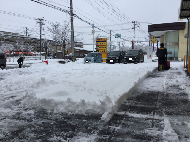当店の駐車場にも積雪があり、今シーズン初の除雪機出動!!
