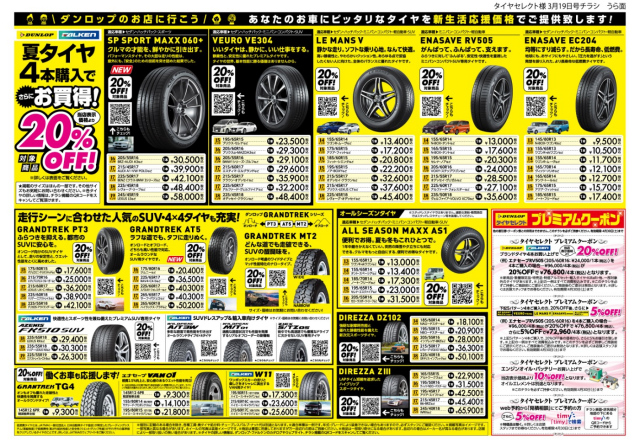 ダンロップ・ファルケンタイヤを4本ご購入で