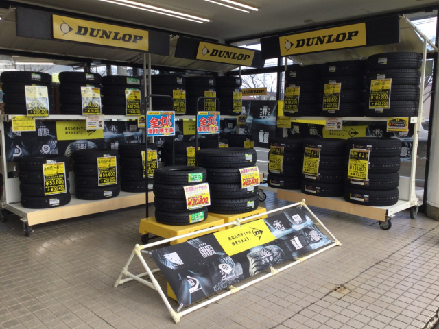 店頭入り口、右側は夏タイヤ展示に変わりました。