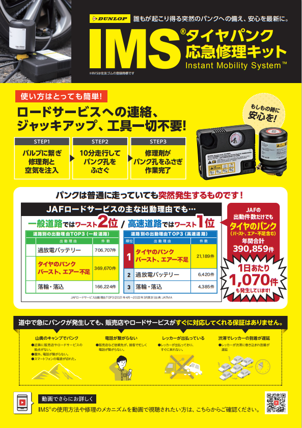 タイヤパンク応急修理キット IMS(Instant Mobility System)