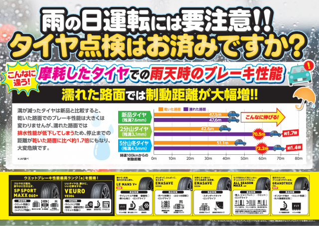 タイヤの溝が減っている状態でのブレーキ制動距離は