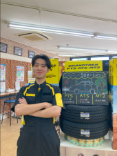 ★ごあいさつ★ 2025年6月より中途入社で入った渡邉です。 この業界は未経験で分からないことばかりですが、接客、ピット作業どちらともできるオールラウンダーになれるよう精一杯頑張りますのでよろしくお願い致します!