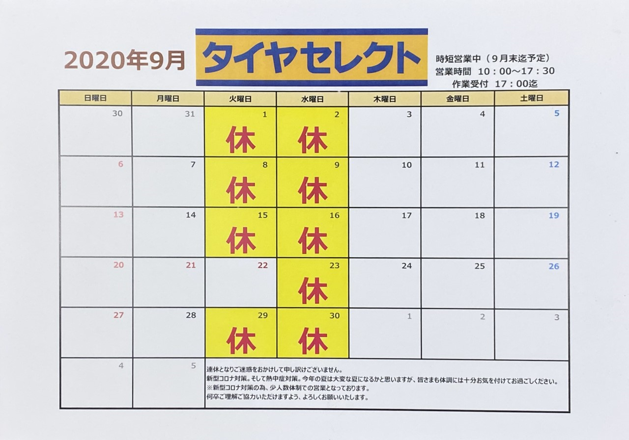 9月もコロナ対策といたしまして、短縮営業とさせていただきます。