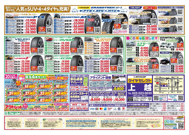 ダンロップ・ファルケンタイヤを4本ご購入で
