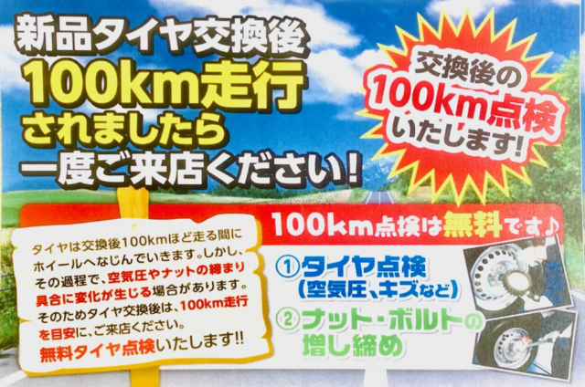 当店では、タイヤご購入のお客様には新品タイヤ交換後
