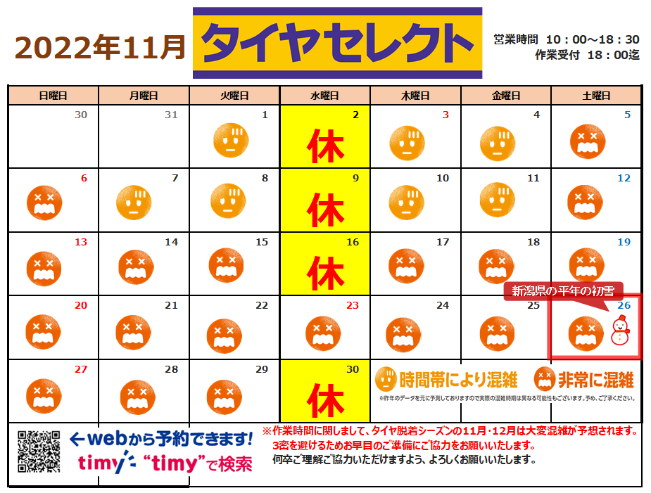11月12月と冬タイヤの履き替えシーズンとなっておりますので大変混雑が予想されます。