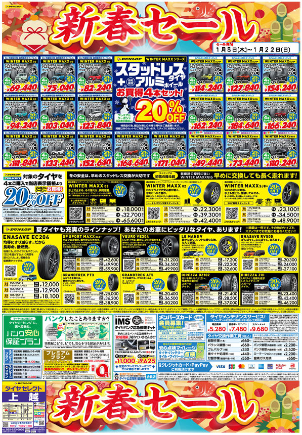 年末にもお知らせしておりましたが、現在タイヤセレクト上越では