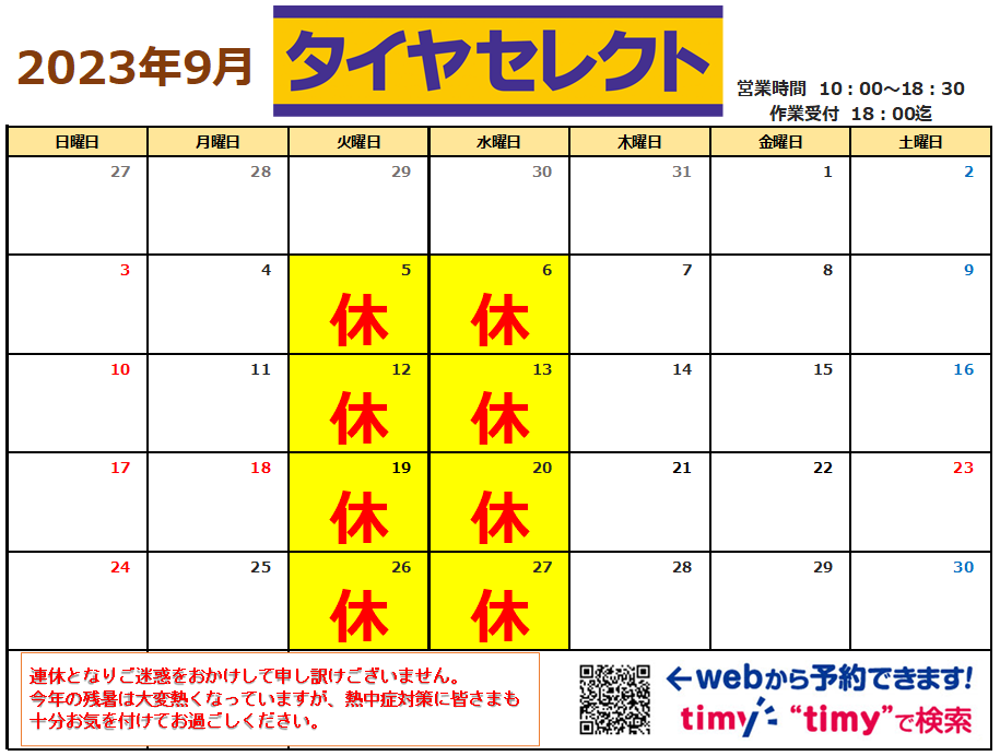 緊急事態宣言の解除が発表されたことを受け、当該エリアのタイヤセレクト・タイヤランド(直営店)におきましては、順次、通常営業を再開いたします。 お客様及び従業員の安全を第一に考え、予約制の導入や接客時間の短縮をはかることで、お客様同士の距離の確保や、スタッフとの接触機会を最小限に心がけるなどの感染防止に努めてまいります。 (店内には消毒液を設置しております。また換気、テーブル等の消毒も実施しております。) 詳細は「 お知らせ」をご確認ください。 ご不便やご迷惑をおかけいたしますが、何卒宜しくお願い申し上げます。