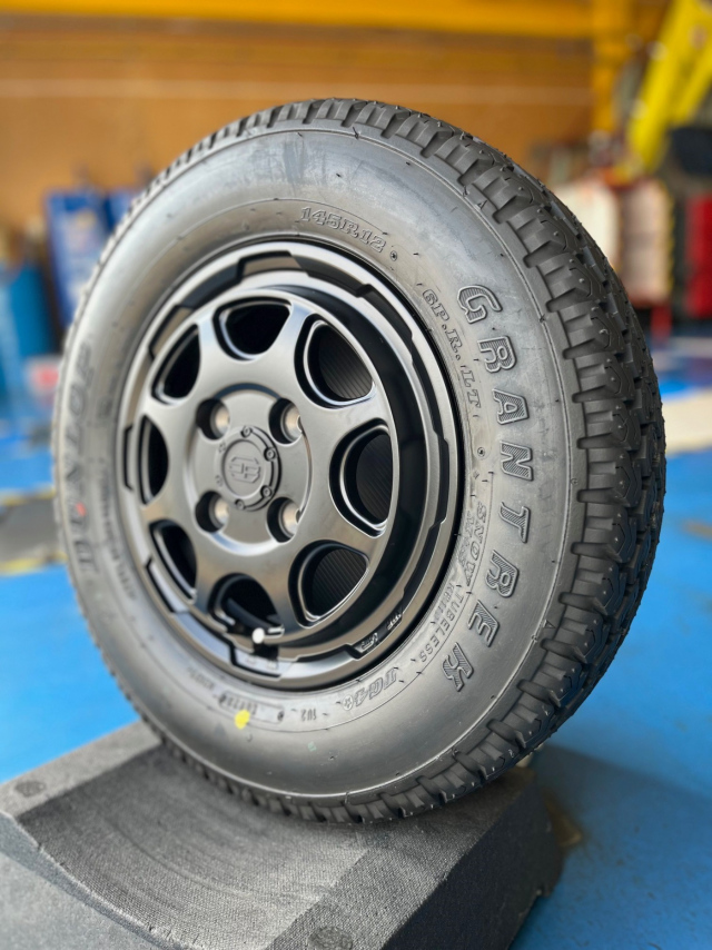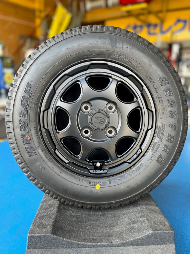 軽トラックをおしゃれにいかがですか? お客様からホイールセットのご注文頂きました。 ホイールは・・・ウェッズのスタットベルク カラーはセミマットブラック タイヤはモチロン・・・ダンロップのロングセラー商品 グラントレックTG4 取付が楽しみです。 2024.07.18