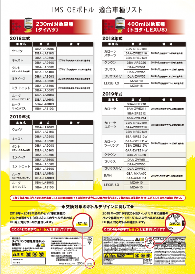 純正同等(OE)パンク修理剤ボトル取り扱い開始!