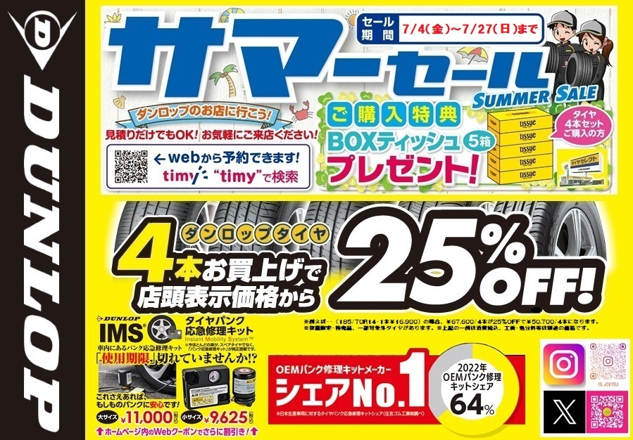 ①タイヤ4本お買い上げで店頭価格より25%off(一部タイヤを除く)