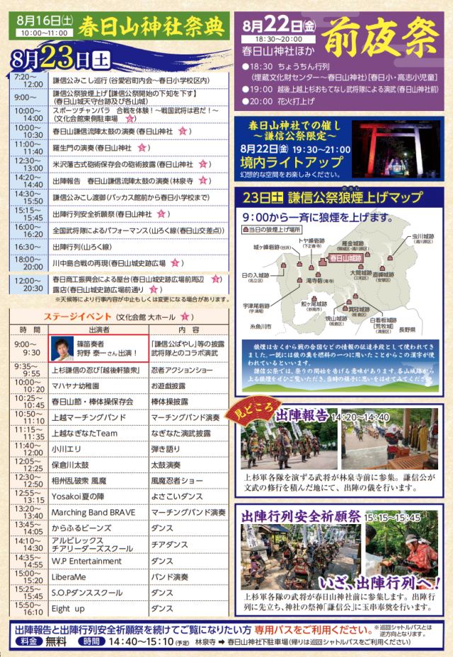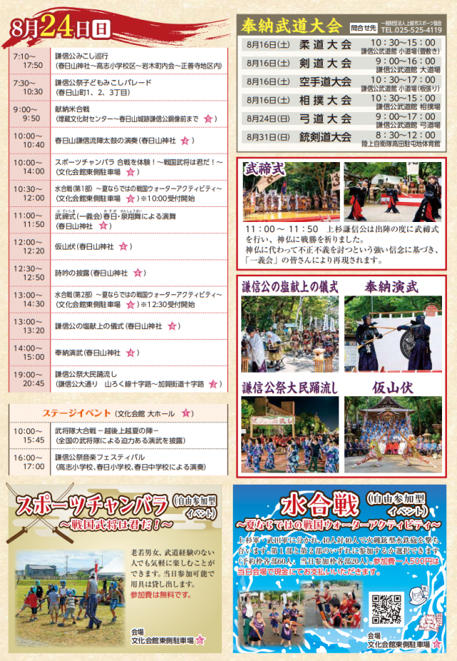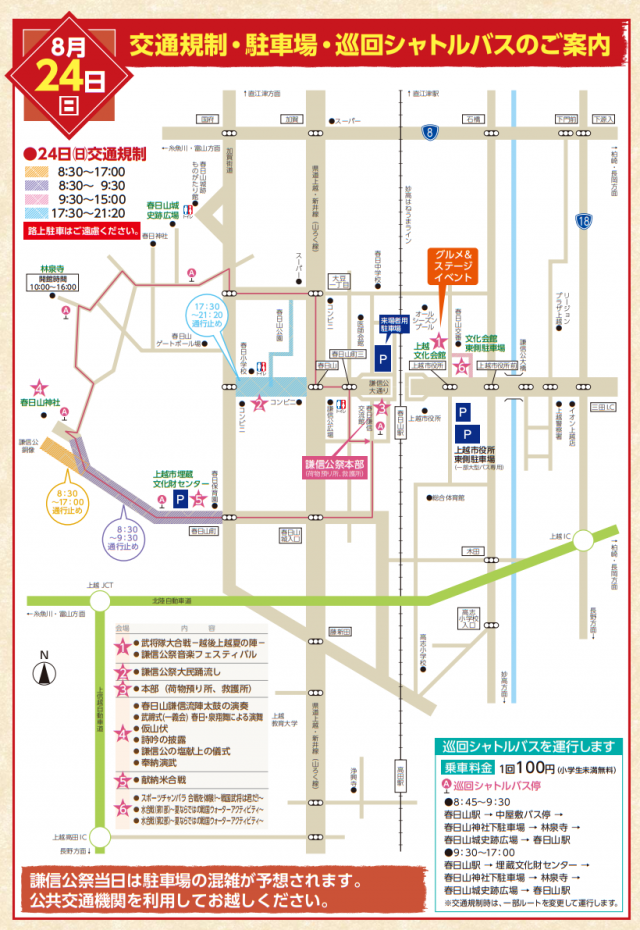 謙信公祭による交通規制のお知らせ 今週末の23日、24日に謙信公祭が開催されます。 開催に伴い交通規制もございます。 時間帯によっては周辺道路が通行止めになりますので、ご来店の際はご注意ください。 ※8月24日(日)開催予定の水合戦は渇水状況を踏まえて水合戦を中止 2025.08.17