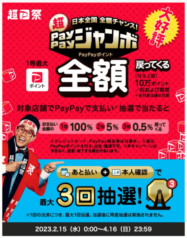 こんにちは!!タイヤセレクト上越です(^^)/ 現在CM等でご存知かも知れませんが超P祭開催中! 【期間】2023.2.15(水)~4.16(日) お会計時paypayにて1等100% 2等5% 3等0.5%のポ...