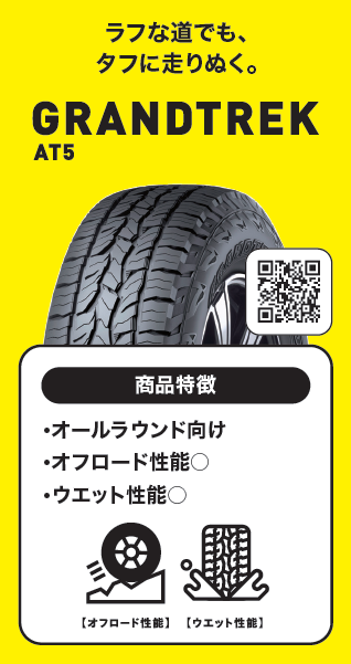 こんにちはタイヤセレクト上越です(=゚ω゚)ノ 「ダンロップ GRANDTREK AT5」 こちらはSUV、4X4向けオールテレーンタイヤ(A/T)となっております。 過去にも投稿させて頂きましたがGRANDTREK PT3 よりも ゴツ...
