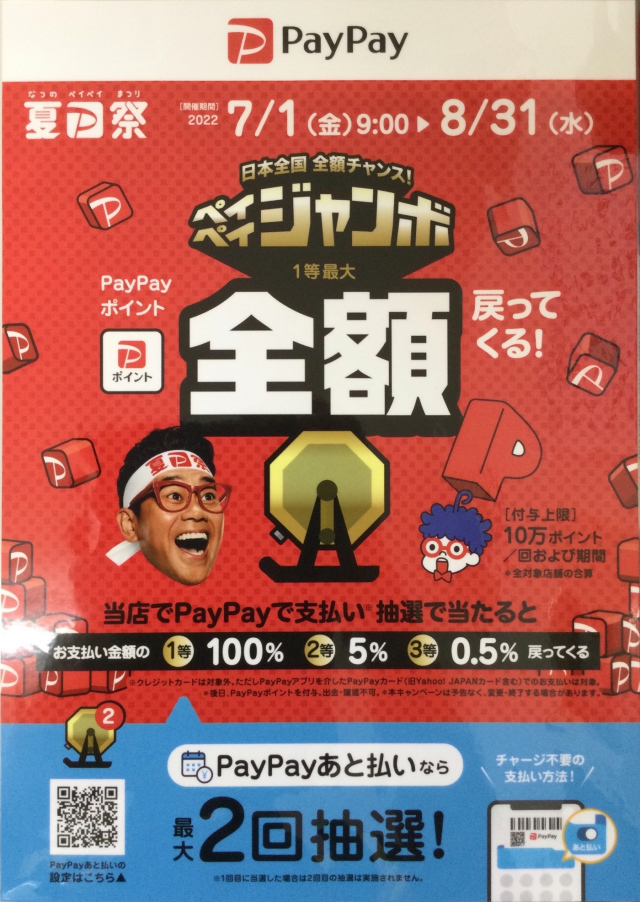 こんにちはタイヤセレクト上越です٩( ''ω'' )و 現在夏P祭開催中ですよ!! 期間2022/7/1~2022/8/31 paypayでのお支払いで還元 1等100% 2等5% 3等0.5% ※付与ポイント上限10...