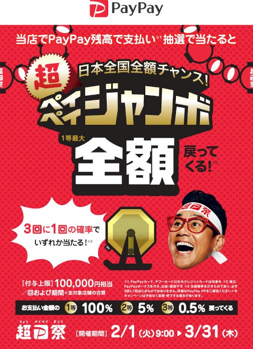 こんにちはタイヤセレクト上越です。 現在CM等でご覧になられた方もいらっしゃると思いますが、 超paypay祭が開催中ですね!(^^)! 期間2022/2/1~2022/3/31 paypayでのお支払いで還元 1等100% 2等5% 3...