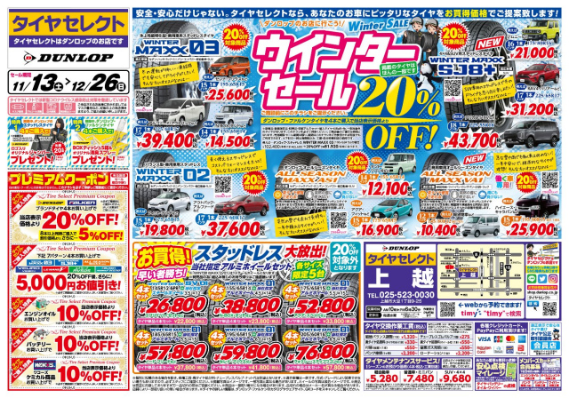 タイヤセレクト上越では、明日までウインターSALE実施中ですが、 今日の夕方より、雪の降り方が強まる予報となっております。 今履いているタイヤ点検や心配などありましたら、お早めにご相談ください。 ご来店の...