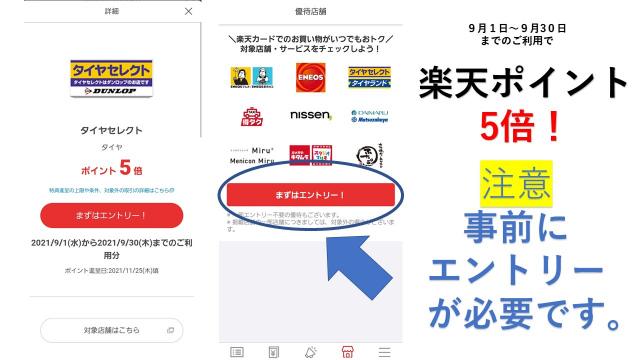 こんにちは。タイヤセレクト上越です。 毎度ご利用頂き、ありがとうございます。 楽天カード会員の皆様へ朗報です。 大好評につき前回に引き続き、9月もポイント5倍です! 2021年9月1日~2021年9月30日までの期間、...