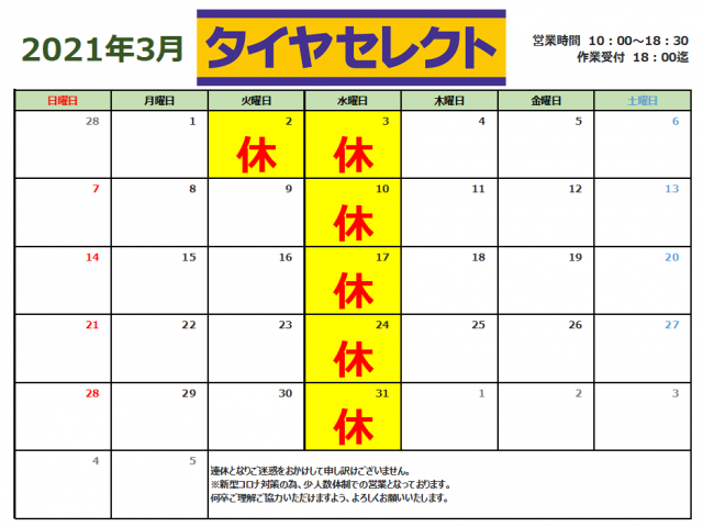こんにちは。タイヤセレクト上越です。 毎度ご利用誠にありがとうございます。 この度当店では予約システム「timy」を導入しました。 お待ち時間の削減や感染対策の一環として密を回避する目的です。 こちらのサイトか...