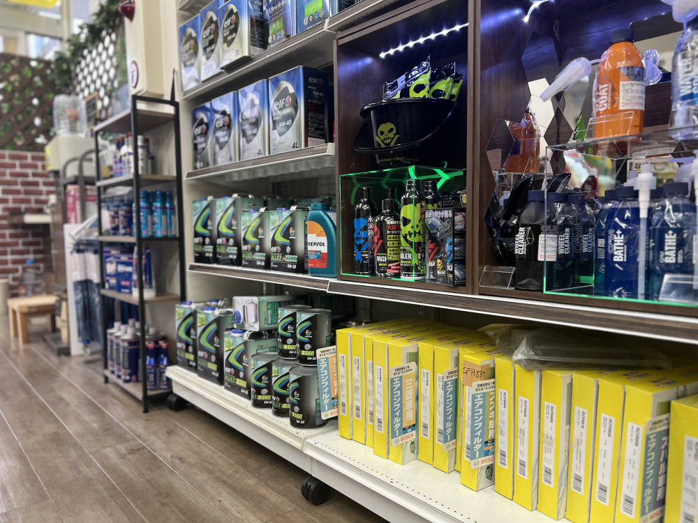エンジンオイルやバッテリー、ワイパー、季節商品も展示してあります!!