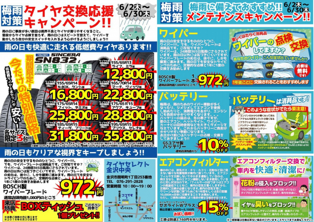 タイヤセレクト金沢中央の6月のイベントカレンダーです。