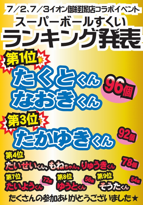 同率3人でした★おめでとうございます