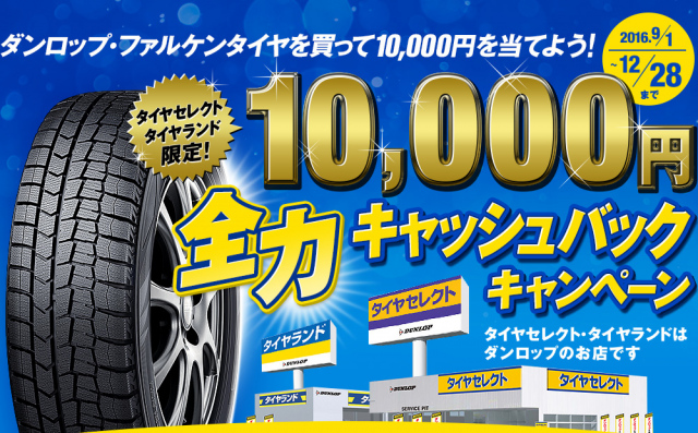 ダンロップ・ファルケンのタイヤを買って10,000円分の商品券をゲットしよう