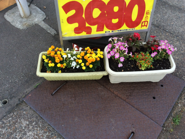 キレイなお花たち こんにちはスタッフの黒川です 当店の看板の下と入り口にキレイなお花が咲きました このお花たちはなんと玉井店長代理の渾身の力作でございます 皆さん是非このキレイなお花たちを見にタイヤセレクト金沢中央にお越し下さい 2017.05.30