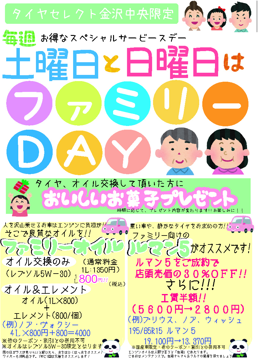 毎週、土曜日と日曜日にご家族でご来店いただくと、