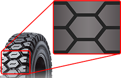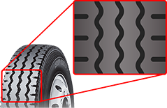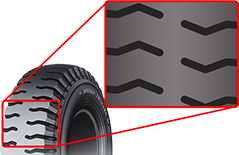 タイヤの周方向に対してほぼ直角に溝。悪路走行に適しています。