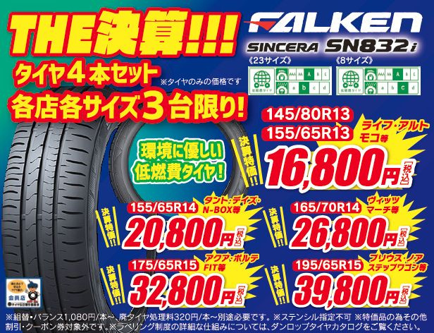 もちろん上記以外のタイヤサイズ・種類も、お買い得になっております