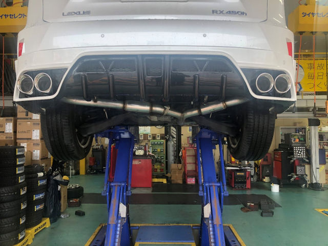 LEXUS RXに4本出しマフラーを取り付けていきます