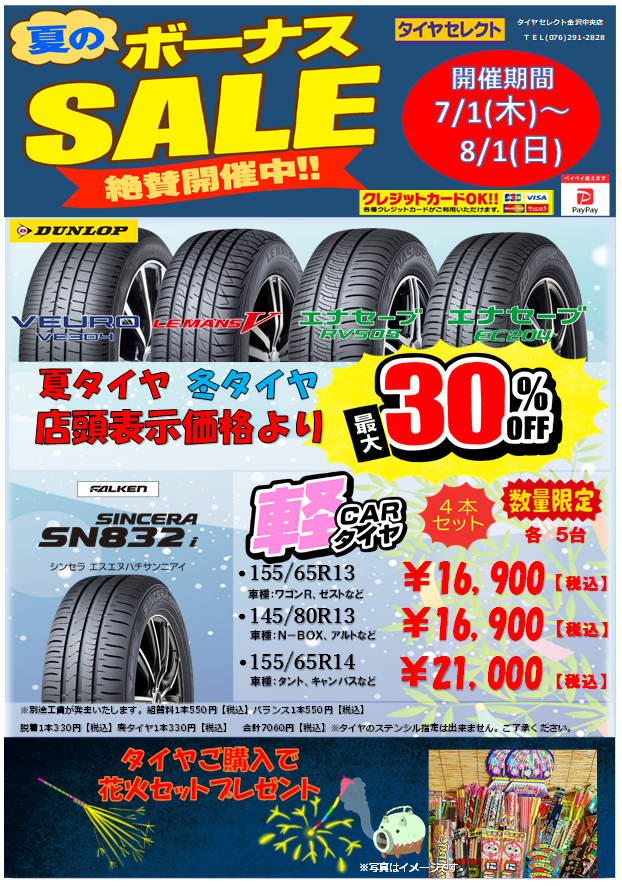 是非一度タイヤセレクト金沢中央へお越しくださいませ。