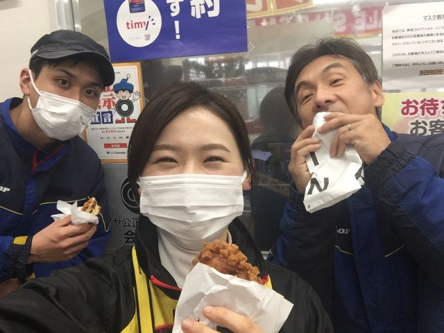 ということで、初めて見たカレーパンと一緒に記念にスタッフで記念撮影(笑)
