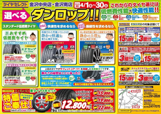 4月末まで、タイヤセレクト金沢中央限定キャンペーン実施中なんですよ!!