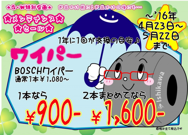 ワイパーはまとめて交換すると、かなりお得です!!
