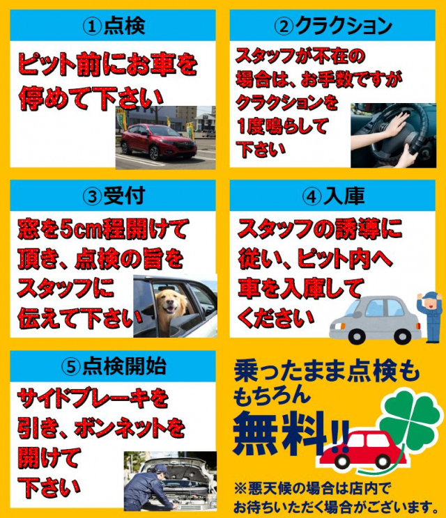 ※ピットに入庫せずにドライブスルーでの点検も可能です!!お申し付けください^ ^
