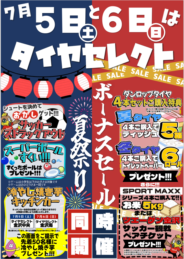こんにちは( ´・ω・)ノ タイヤセレクト金沢南です 今回は タイヤセレクト金沢南の 夏のイベントをご紹介いたします °˖✧◝(⁰▿⁰)◜✧˖° ↓ ↓ ↓ ↓ &nbs...