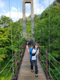 別当出合から登り始め、スタート地点のつり橋です。ここテンションあがるんですよね~
