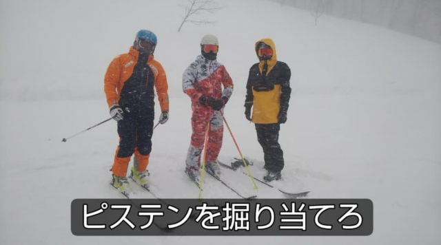 パウダー下のピステンを掘り当てカービングとなりました笑