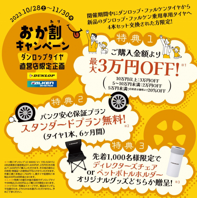 ダンロップ・ファルケンタイヤおか割キャンペーン開催!!