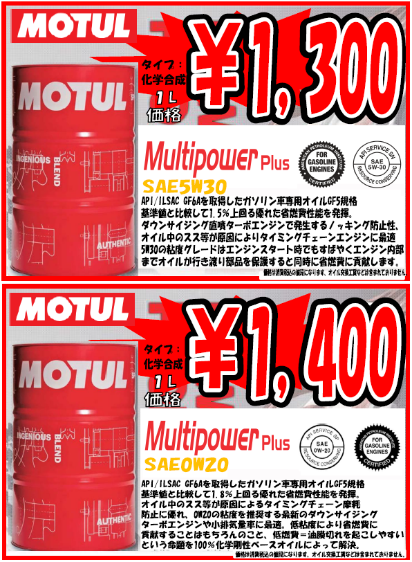 モチュールパワープラス 5W30 1L(税込)¥1300