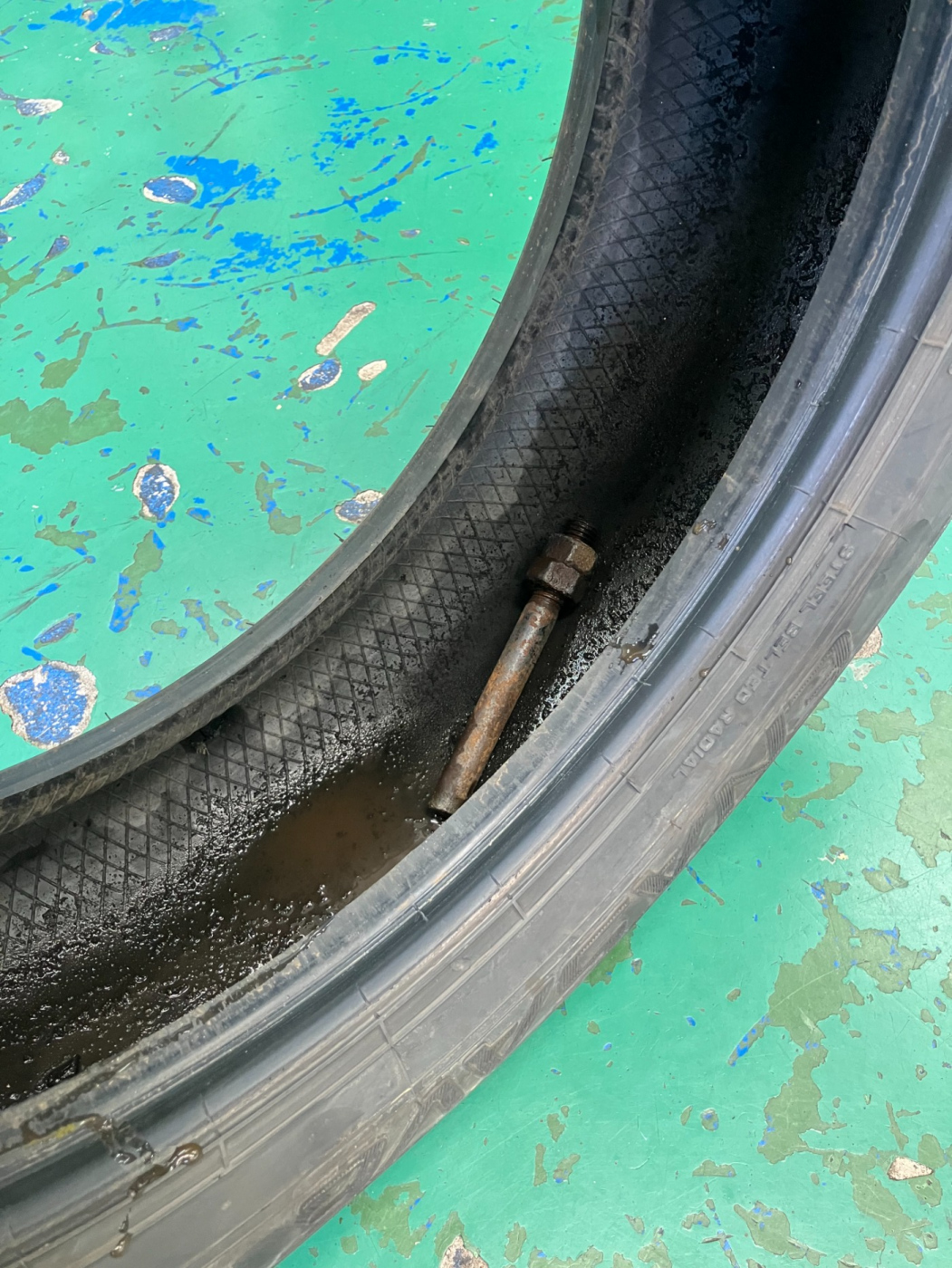 どうやって、タイヤの横から刺さって入ったのか?(トレッド面は全く異常なし・・)