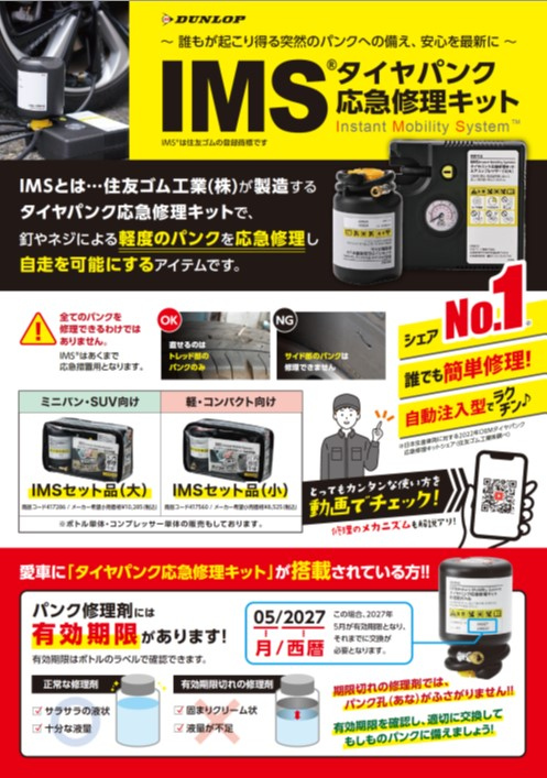 また、車種は限定されますが、純正搭載のパンク修理キット対応の交換ボトルも
