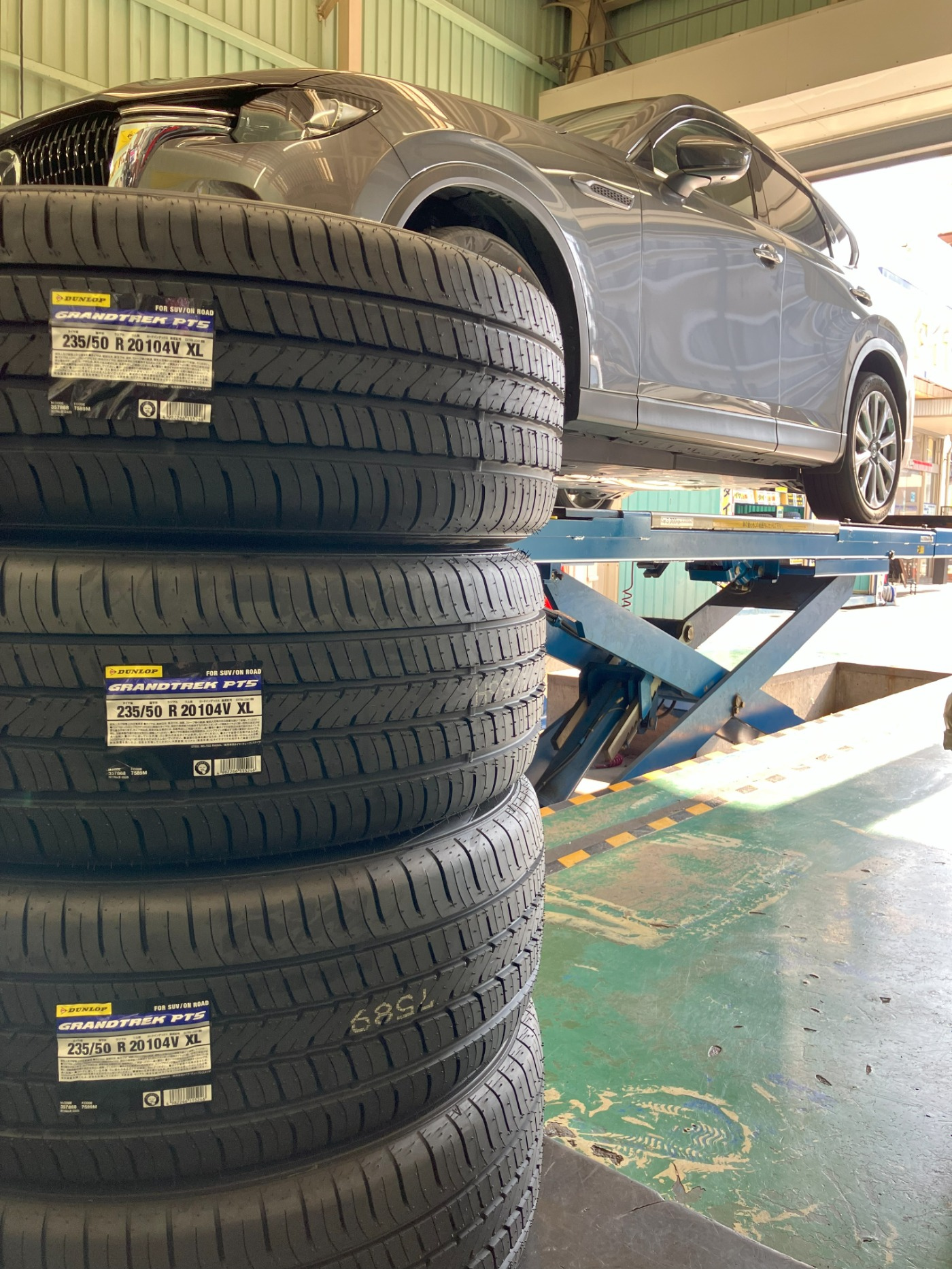 先日、タイヤ交換をさせて頂いた時の画像です~ やはり20インチは大きかったです~ お近く寄られた際は点検お待ちしております~