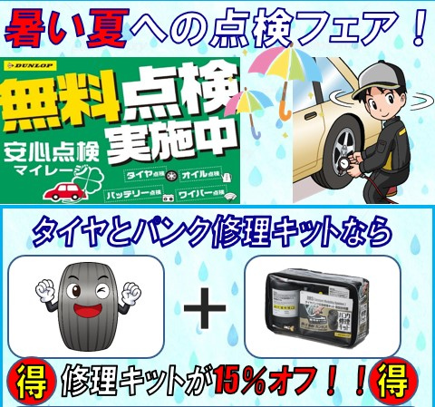 只今、梅雨の点検フェアを開催中です!! 梅雨、終わっちゃいましたね~。 観測史上最速だそうです・・ タイヤ点検は無料ですので、是非この機会に点検しませんか? フェア期間中であれば、タイヤ4本購入の方には IMS...