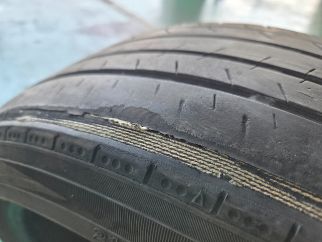タイヤのワイヤーが見えている状態でした‼