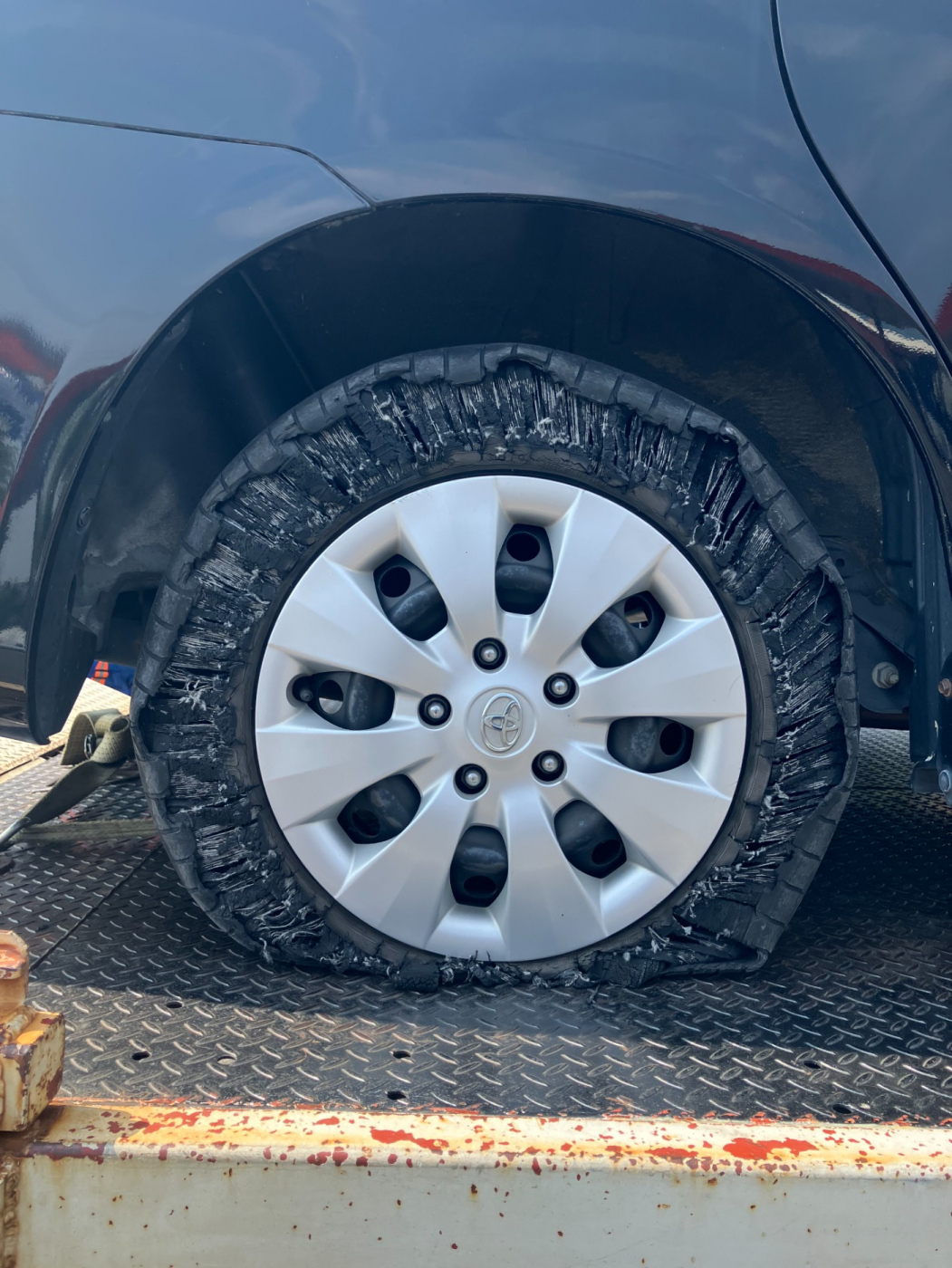 高速道路だった為、避難区間に入り、レッカー要請をした。とのこと。
