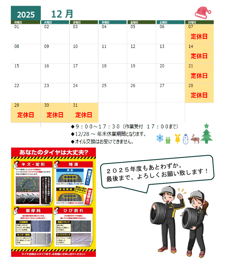 平日9:00~17:30(作業受付は17時まで)12時から13時はお昼休憩になりますのでお電話が繋がりません