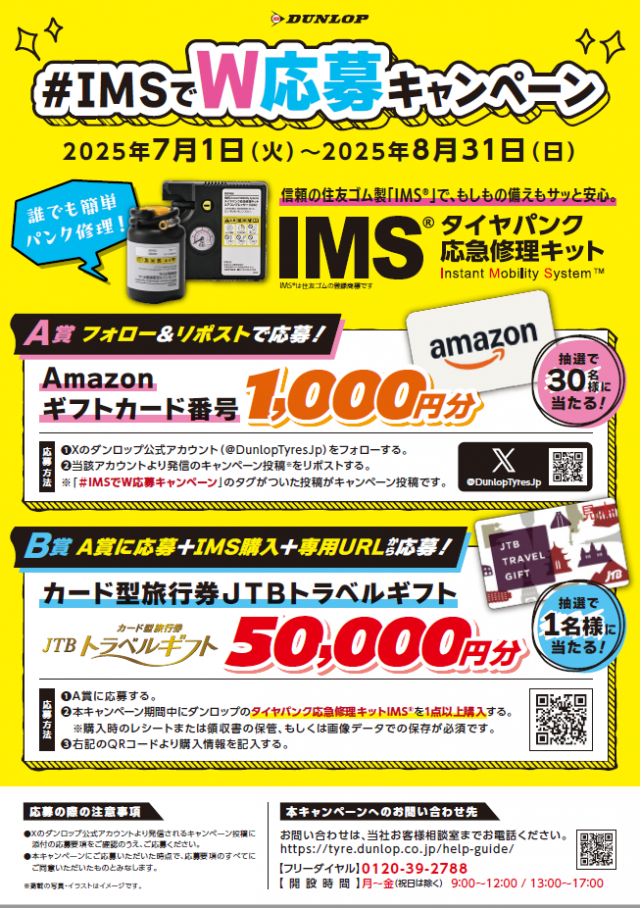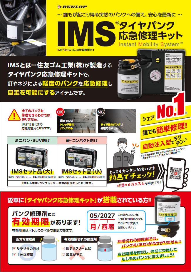 2025年7月1日~2025年8月31日までIMS(タイヤパンク応急修理キット)のダブルキャンペーンを実施いたします!